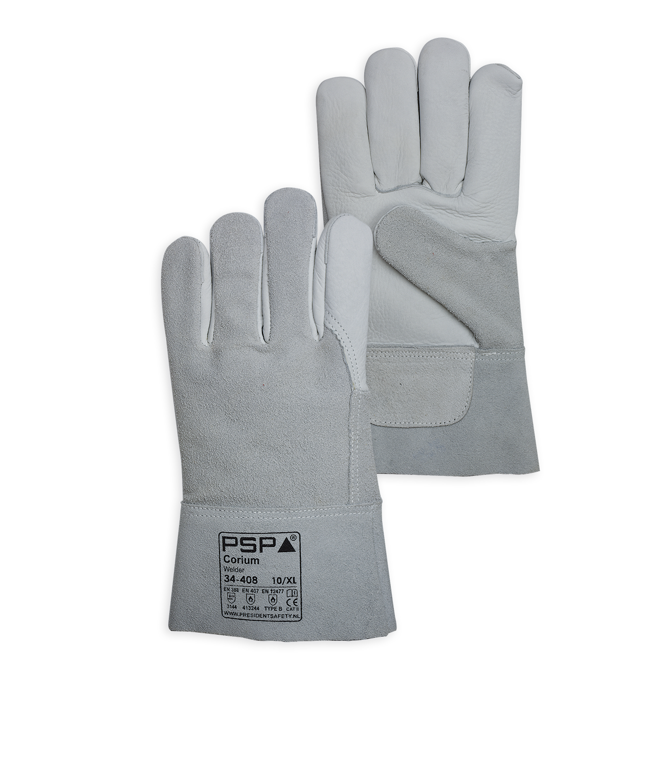 34-408 TIG Lashandschoen / Eigenschappen / Welder / 5 vingermodel / Nerflederen palm / Splitlederen rug en kap / Totale lengte 28 cm / Vrij van Chromium VI en PCP / Keuringen conform: EN420 / EN388:2016 / EN407 / EN12477 Type B